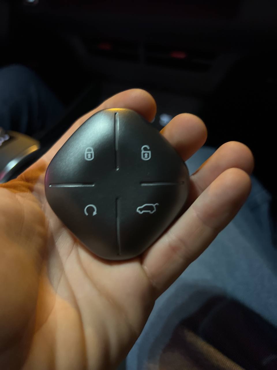 Закрыть надо тачку. Потом закрыть еще раз и нажать и держать стрелку круглую пока не запустится - габариты загорятся